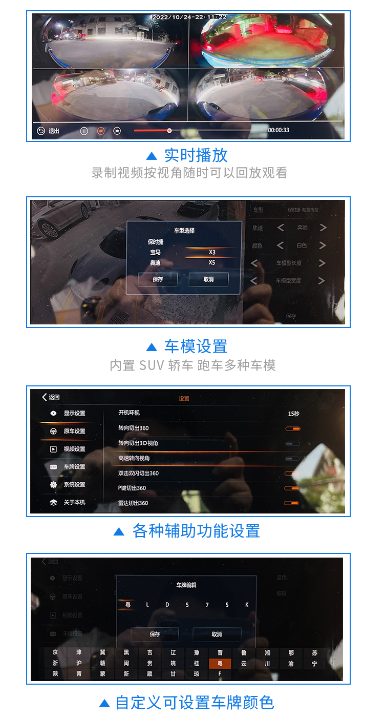 四路行車(chē)記錄/ 盲區(qū)輔助/ 精準(zhǔn)軌跡/ 超清夜視